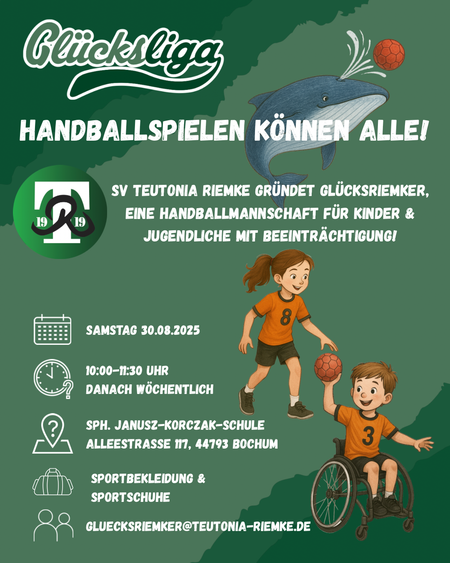 Der SV Teutonia Riemke gründet eine inklusive Handballmannschaft für Kinder und Jugendliche mit Beeinträchtigung – und wir laden dich herzlich zum Probetraining ein!
