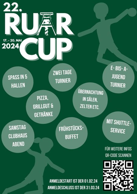 Nach einer Pause von 4 Jahren ist es endlich soweit – Pfingsten 2024 steht der langersehnte Ruhr-Cup wieder vor der Tür! Die Organisationsvorbereitungen laufen bereits auf Hochtouren, und jetzt seid auch ihr gefragt!
