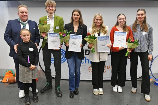 Neben Lilli aus Riemker Reihen waren elf weitere Jugendliche aus neun verschiedenen Sportarten anwesend. Die Abiturientin trainiert bereits seit vielen Jahren unsere gemischte F-Jugend, steht einmal in der Woche auf dem Parkett der Heinrich-Böll Halle und unterstützt die jungen Teutonen bei heimischen-und auswärtigen Spielefesten.