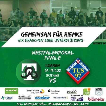 die 1. Damenmannschaft von SV Teutonia 1919 Bochum-Riemke Handball e.V. hat es nach einem souveränen Turniersieg gegen direkte Ligakonkurrenten aus der Oberliga ins Westfalen-Pokalfinale geschafft. Darauf können wir als Verein und Bochumer STOLZ sein! Um die vorangegangene Leistung zu honorieren, sind WIR nun alle in der Pflicht.