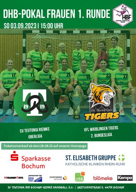 es ist endlich soweit – die Spannung steigt! 🔥Die 1. Runde im DHB-Pokal steht vor der Tür und unser SV Teutonia Riemke trifft auf die VfL Waiblingen Tigers! 🤩 Seid dabei, wenn es am Spielfeld heiß hergeht und die Emotionen überkochen.🙌🏽