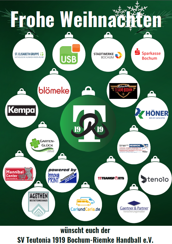 im Namen des Vorstands des SV Teutonia Riemke wünschen wir euch frohe und festliche Feiertage. Wir hoffen, dass ihr eine besinnliche Weihnachtszeit im Kreise eurer Lieben verbringt und die wohlverdiente Erholung genießen könnt.
