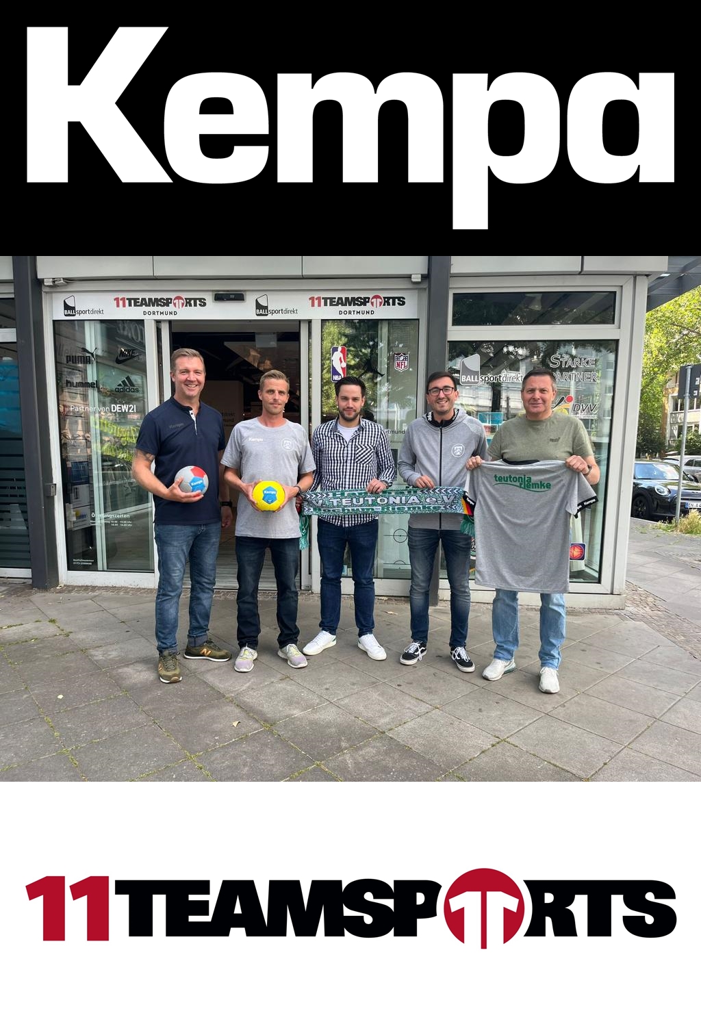 Wir freuen uns, endlich bekannt geben zu dürfen, dass wir eine aufregende neue Partnerschaft mit dem für den Handballsport bekannten Sportausrüster Kempa und dem Sporthändler 11teamsports (Bochum und Dortmund) eingegangen sind. Diese Zusammenarbeit wird in den kommenden drei Jahren die Grundlage für eine innovative und vorteilhafte sportliche Zukunft schaffen.